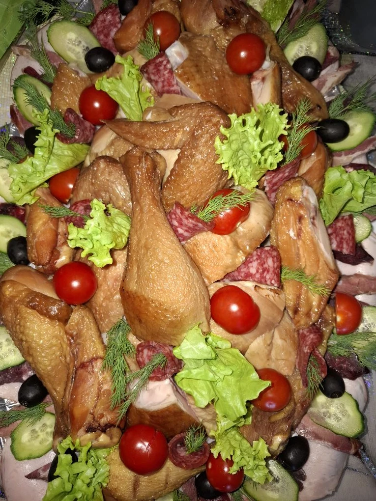 В семье Канаевых есть небольшое, но очень вкусное хобби — копчение мясной продукции для себя и родных. Муж своими руками готовит настоящие деликатесы: курочку, свинину, домашнюю колбасу, уточку и многое другое. А Екатерина берёт на себя не менее важную миссию — тонко нарезает, красиво сервирует, совмещает вкусы и создаёт из этого настоящий праздничный стол в ожидании гостей.