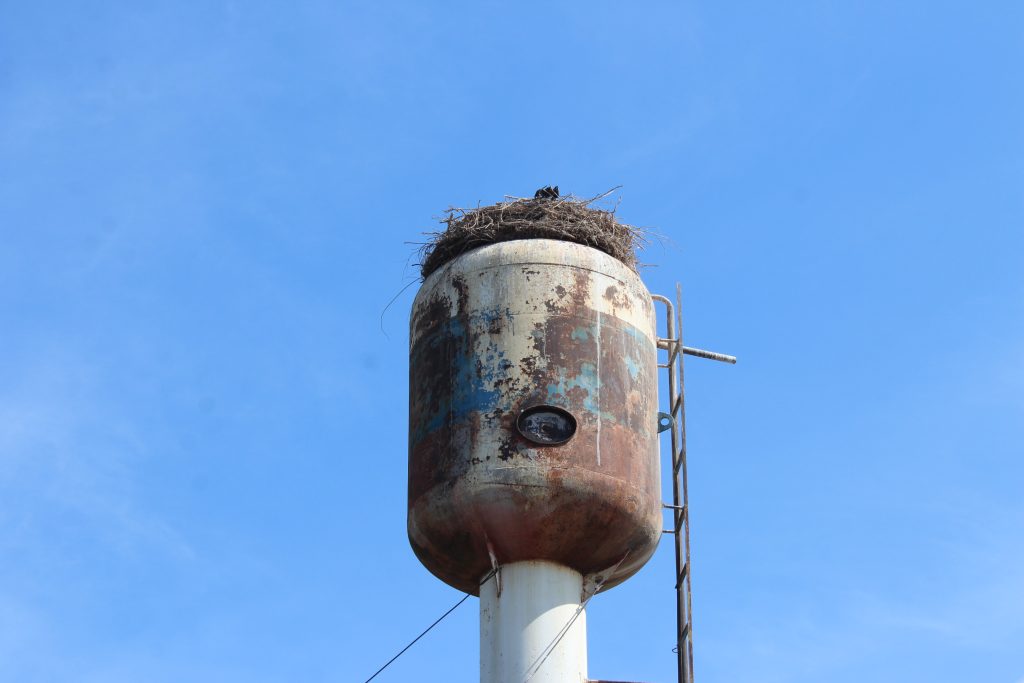 Некоторые жители были обеспокоены нахождением птичьего гнезда на водонапорной башне. Намеревались снять и гнезда. Существовало мнение, что птицы будут засорять воду. Мы решили обсудить эту ситуацию с руководителем муниципального унитарного предприятия управления водно — коммунального хозяйства.