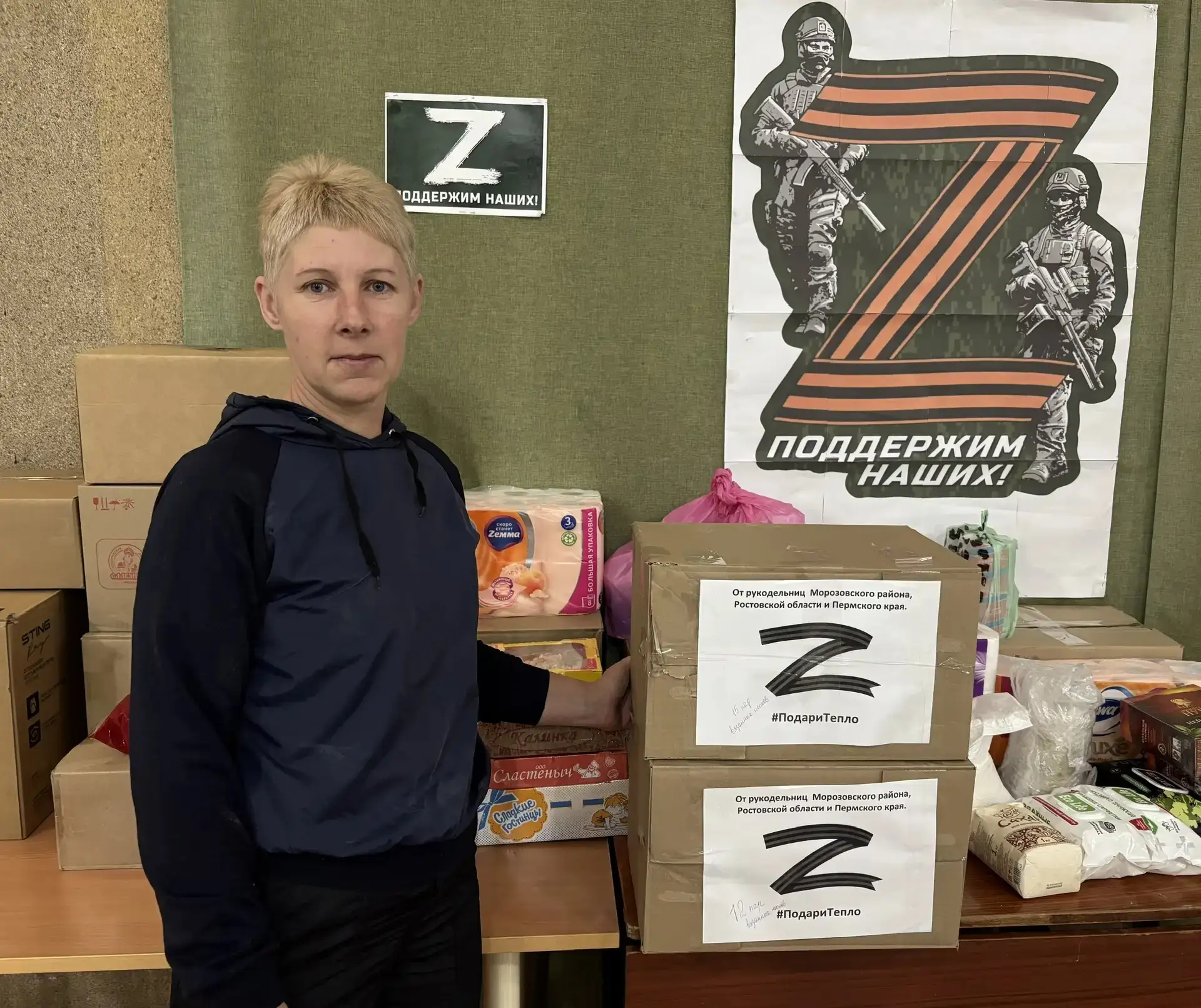 В Штаб общественной поддержки поступили теплые вещи, продукты длительного хранения, полотенца, средства личной гигиены и обереги. Особое внимание организаторы уделили рукодельным подаркам: местные мастерицы связали для военнослужащих теплые носки. Вся собранная помощь будет направлена на фронт.