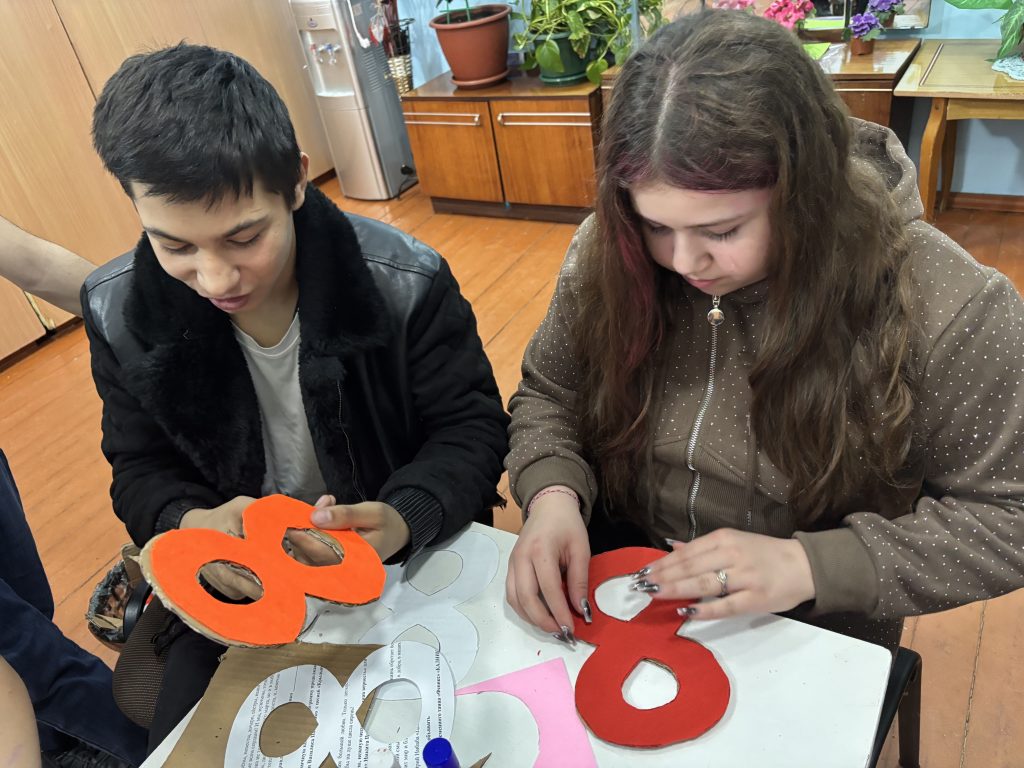 Ребята с большим энтузиазмом вырезали восьмерки и украшали их вкусными конфетами, стразами, цветами и другими элементами декора. Ведь каждый ребенок знает, что подарки, сделанные своими руками, особенно ценны для мам.