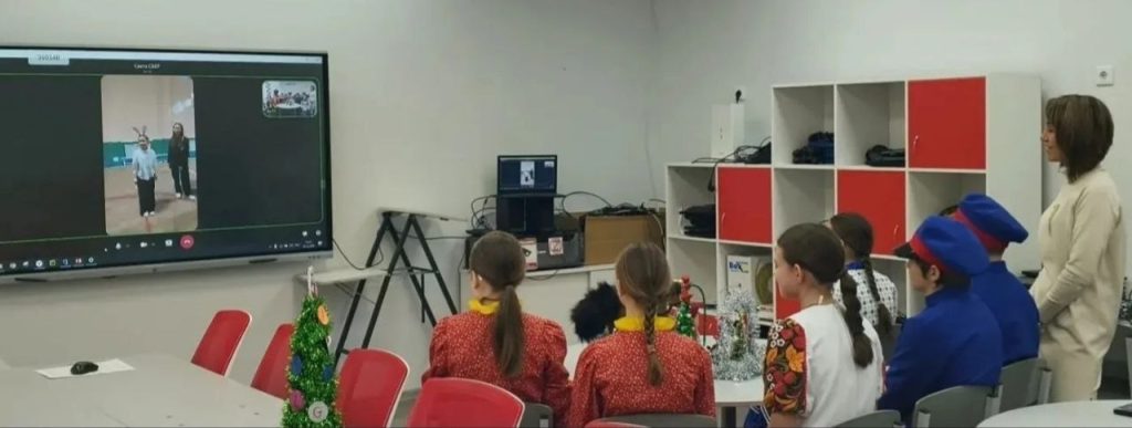 Учащиеся поделились опытом участия в различных конкурсах, обсудили запланированную работу по направлениям и рассказали о своих достижениях. Активисты обеих школ рассказали, как у них проходят предновогодние дни и подготовка к самому главному празднику. Обе стороны показали друг другу украшенные новогодние елки и праздничные фотозоны.