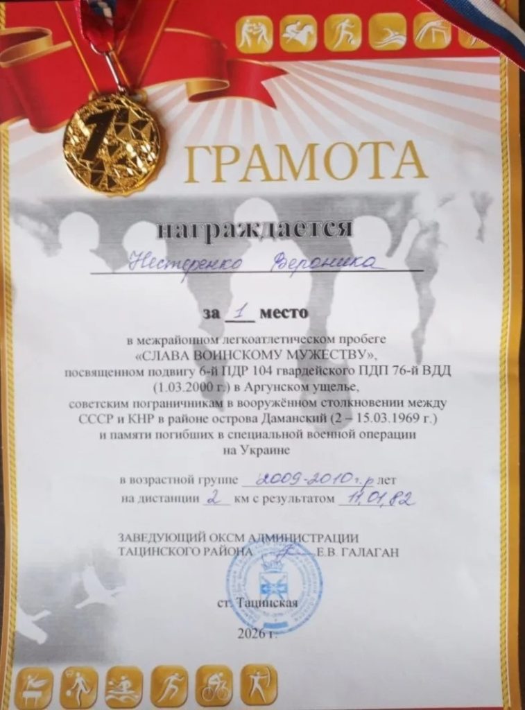 1 место — Нестеренко Вероника (группа № 98), дистанция 2000 м!