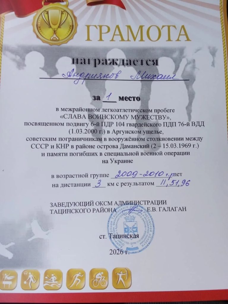 1 место — Андриянов Михаил (группа № 97), дистанция 3000 м!