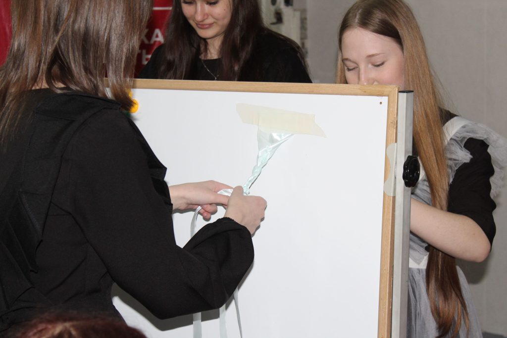 Школьницы успешно узнавали блюда по их ингредиентам; плели косички из лент на скорость, да так усердно, что одну вырвали с корнем. Читали поздравительные стихи с разными эмоциями: задумчиво, обидчиво, завидуя, с презрением. Это задание получилось выполнить не у всех, но Настя Статникова, вывезла этот конкурс своей харизмой, прочитав и свой, и чужие стихи с нужными интонациями.