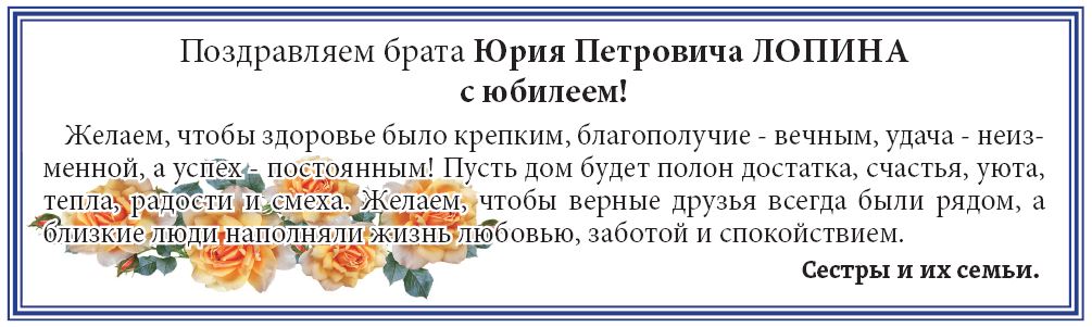 Главная » Поздравления Поздравляют с Юбилеем Юрия Петровича Лопина! Поздравления На чтение 1 мин Просмотров 3 Опубликовано 14 ноября, 2025 ЧИТАЙТЕ ТАКЖЕ: Удивите своих близких и родных оригинальными поздравлениями