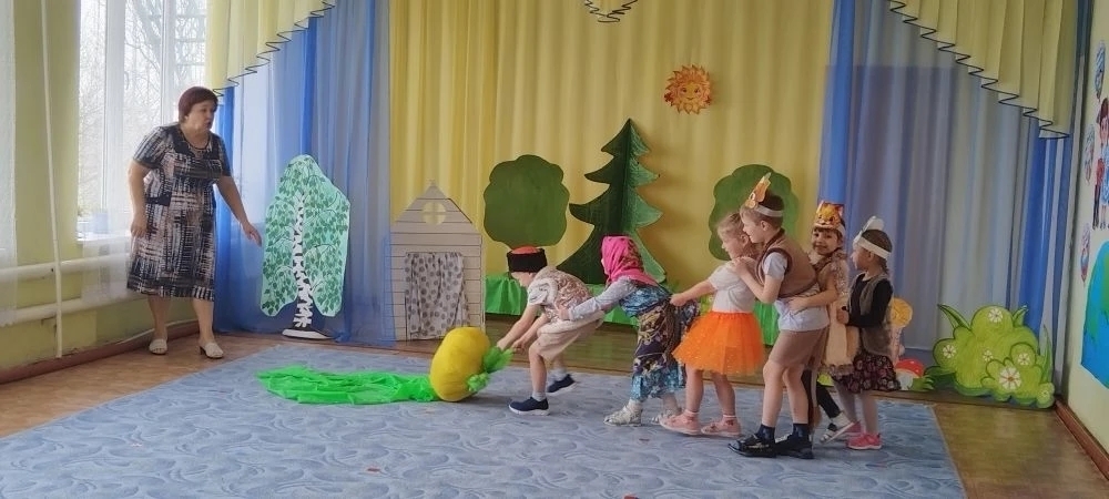 Воспитанники детского сада хутора Парамонов в честь Дня театра устроили настоящий праздник. Юные актеры пригласили своих друзей на представление по мотивам русской народной сказки «Репка». Зрители, купившие билеты, заняли свои места. Благодаря ярким костюмам детям удалось талантливо перевоплотиться в любимых персонажей. Продолжили концертную программу ребята из старшей группы, показав более зрелое актерское мастерство.