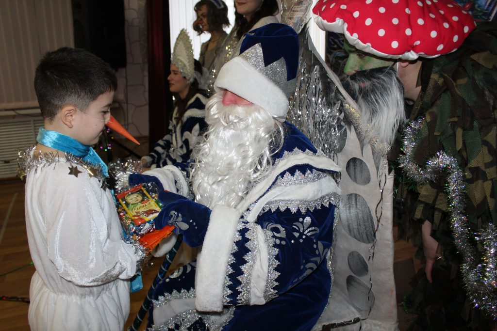 Не обошлось без детских переживаний: кто-то забыл стишок, кто-то застеснялся. Но добрые сказочные герои утешили каждого малыша, поздравили с Новым годом и вручили долгожданные сладкие подарки.
