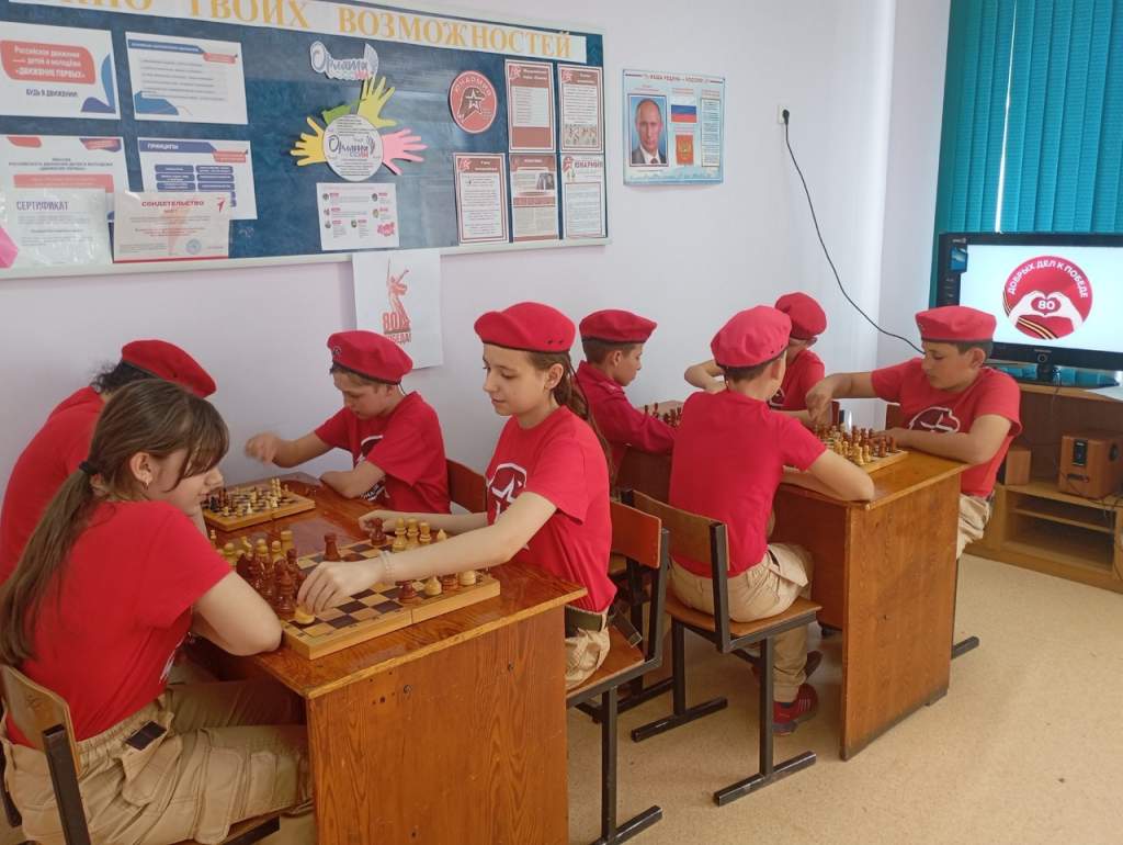 Юнармейцы отряда «Пламя» Им. Героя СВО Кожевникова В.С. Вольно-Донской школы сразились в шахматном турнире, посвятив его 80-летию Великой Победы.