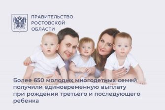 Более 650 многодетных семей Дона получили единовременную выплату при рождении третьего ребенка
