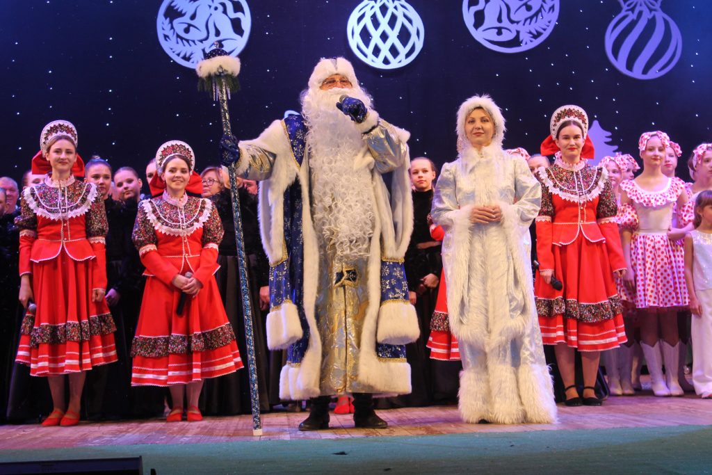 И, вот, казалось бы, девятое января (в этот день состоялся концерт), какой уж Новый год! Но оказалось, что Дед Мороз и Снегурочка из-за аномально теплой зимы на своих санях по грязи никак не выберутся из Морозовска. Попивают чаек, ждут погоды и периодически появляются на людях.
