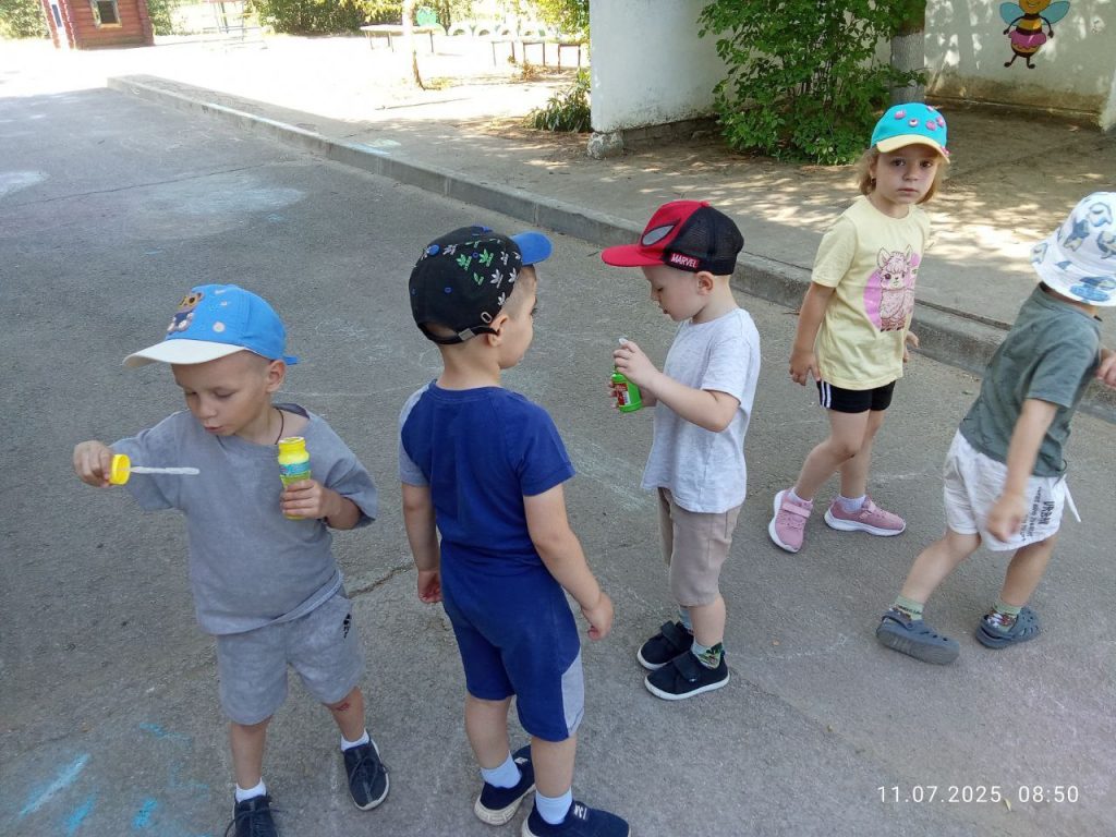 В младшей группе»Пчёлки» прошло развлечение «Посмотри-ка, посмотри, как сияют пузыри». Ребята с радостью запускали пузыри, любовались их красотой, с восторгом наблюдали за разноцветными пузырьками, за их волшебным превращением.Все остались очень довольны и счастливы, ведь мыльные пузыри для них — это волшебство!