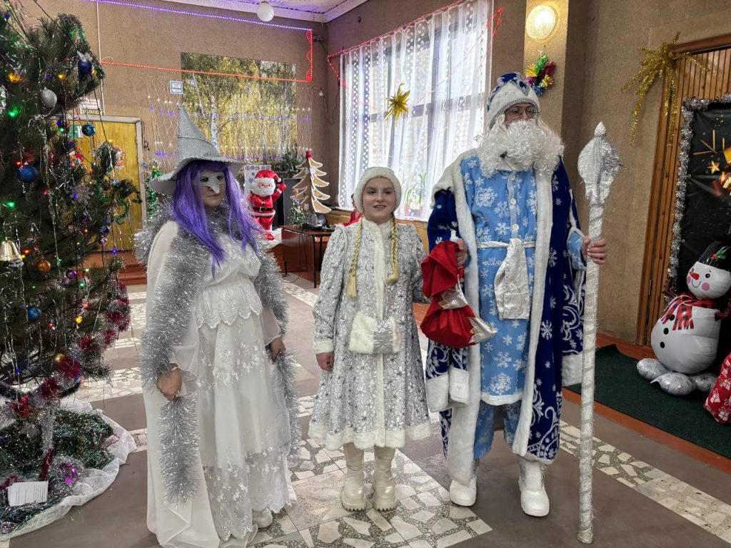 Гостей праздника ждала яркая театрализованная программа. Ребята встретились с главными зимними волшебниками — Дедом Морозом (Никита Панасенко) и Снегурочкой (Екатерина Ищенко). А ещё в гости заглянули озорные и добрые персонажи: Снежная ведьма (Наталья Бабкина), Сказочный кот (Валентина Павлюкевич), Фея (Наташа Пульникова), Скоморох (Артём Перетокин) и даже Чайничек (Анна Радченко).