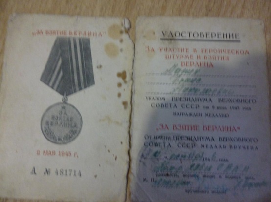 В победном 1945-м он был разведчиком. Однажды его назначили командиром группы захвата. Разведка ночью благополучно пересекла реку Одер и скрытно подошла к штабу немецкой части. Фашисты не ожидали такого дерзкого нападения и были беспечны. Мой отец и его боевые товарищи уничтожили охрану, порвали кабеля связи и захватили ценного «языка» — немецкого оберста. (воинское звание старшего офицерского состава у врага). За этот подвиг он был награждён орденом Славы 3-й степени.