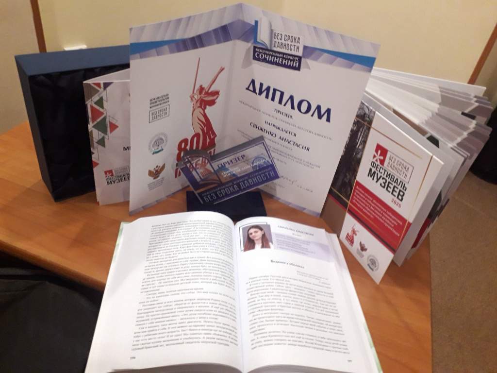 Ранее мы сообщали, что Анастасия Свиженко, ученица 10 класса школы №4 города Морозовска, стала призером федерального этапа международного конкурса сочинений «Без срока давности».