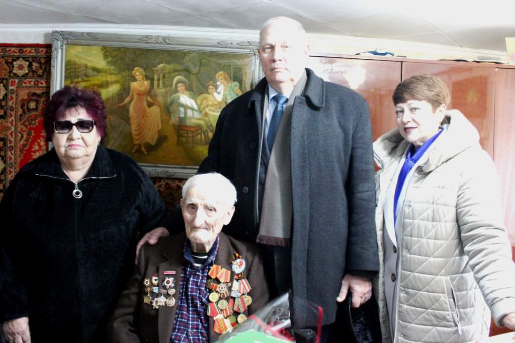 Василий Михайлович с искренней радостью принял поздравления и подарки, выразив слова благодарности за заботу и внимание Администрации Морозовского городского поселения и Совету ветеранов Морозовского района, а также дал своеобразное напутствие тем, кто сегодня ведет бои в ходе СВО: